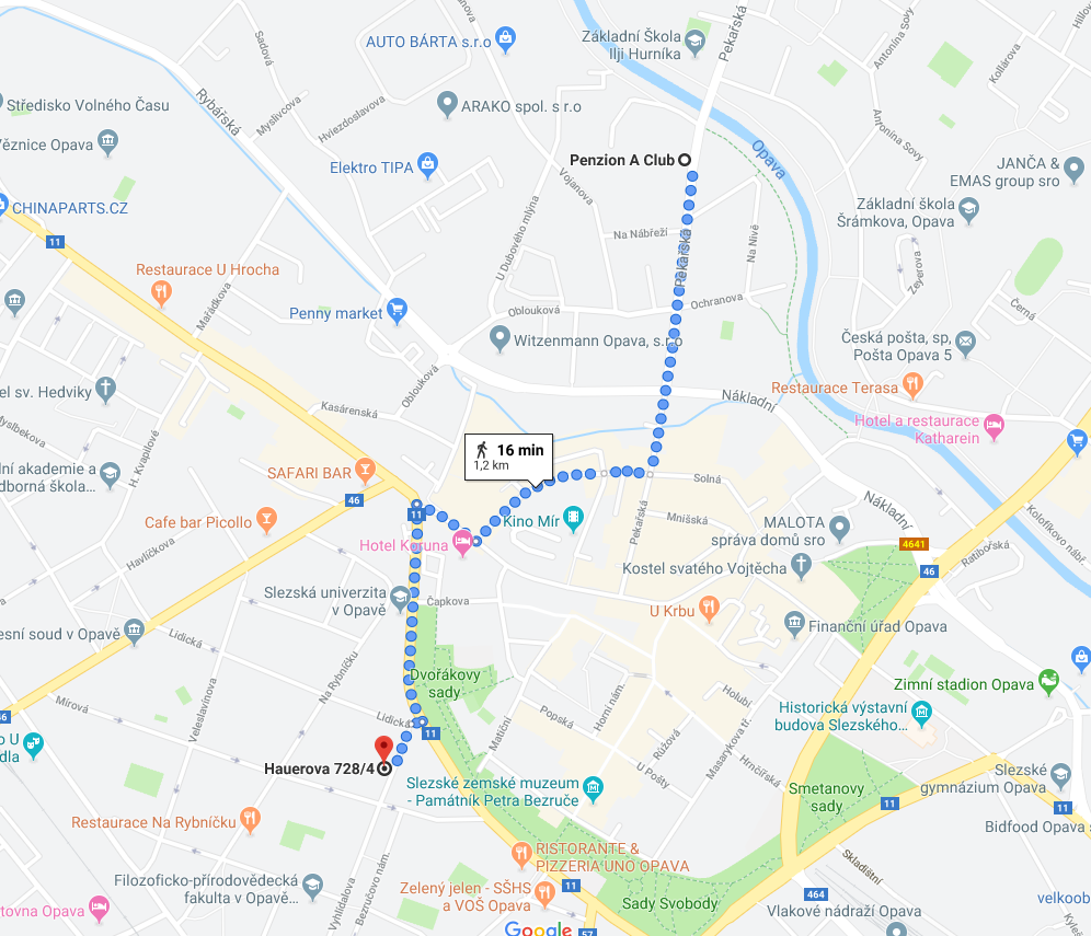 | HOTEL A CLUB *** Pekařská 65 746 01 Opava www.penzionaclub.eu Distance: 20 minutes walk |