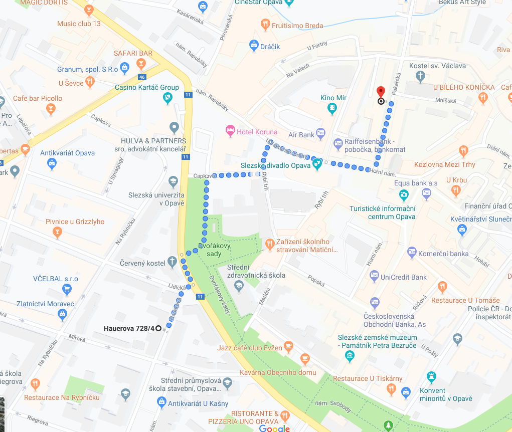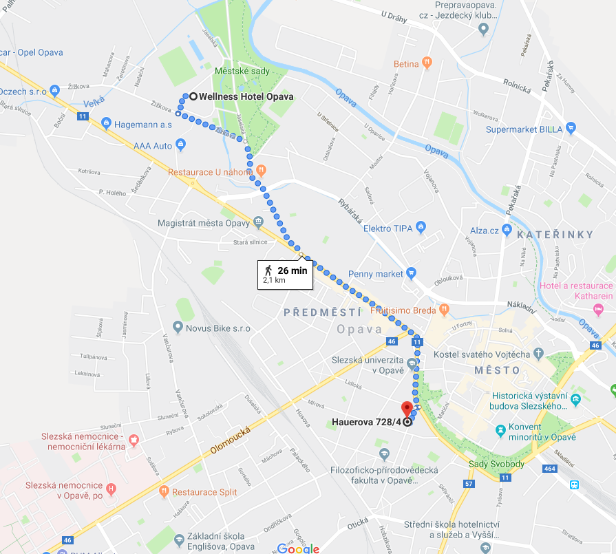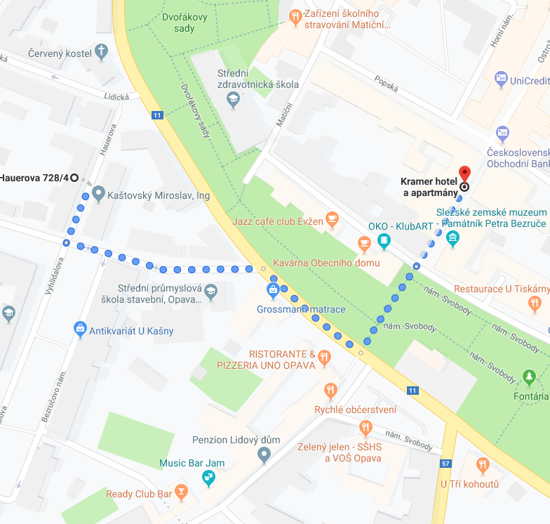 HOTEL KRAMER **** Ostrožná 34 746 01 Opava Distance: 8 minutes wallk |